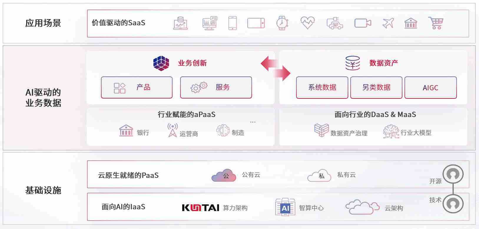 数字时代,,,,围绕企业数字化转型的关键要素,,,,壹号平台数码开创性的提出数云融合战略和技术体系框架,,,,着力在云原生、、、数字原生、、、AI原生和信创产业上架构产品和服务能力,,,,为处在不同数字化转型阶段的快消零售、、、汽车、、金融、、、、医疗、、、、政企、、、、教育、、、运营商等行业客户提供泛在的敏捷IT能力和融合的数据驱动能力,,,,构建跨界融合创新的数字业务场景和新业务模式,,,,助力企业级客户建立面向未来的核心能力和竞争优势,,,,全面推动社会的数字化、、智能化转型升级。。。。